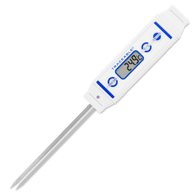 Termómetro digital para alimentos con sonda de vástago en acero inoxidable y cuerpo de plástico ABS resistente. Es una excelente opción para laboratorios, procesamiento, y preparación de alimentos, así como en la elaboración de cerveza. Su construcción permite el uso en laboratorios, plantas, áreas