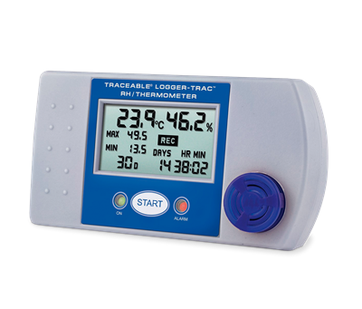 Datalogger para el registro y transferencia de datos, monitorea la humedad y temperatura. Cuenta con una pantalla amplia LCD donde nos permite visualizar al mismo tiempo la temperatura, la humedad (6550), el tiempo acumulado de grabación y los máximos y mínimos. Alarma cuando los parámetros están