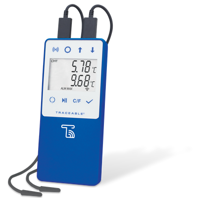 Termómetro digital con datalogger e interface a WIFI TraceableLIVE para registro de datos de forma inalámbrico por conexión wifi. Transmisión continua de datos a la interfaz basada en la nube. Las alarmas audibles y visuales ayudan a identificar cualquier condición fuera del rango. De alta precisión