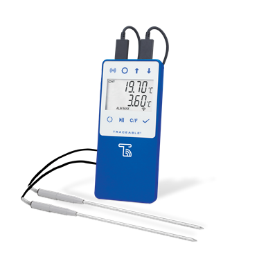 Termómetro digital con datalogger e interface a WIFI TraceableLIVE para registro de datos de forma inalámbrico por conexión wifi. Transmisión continua de datos a la interfaz basada en la nube. Las alarmas audibles y visuales ayudan a identificar cualquier condición fuera del rango. De alta precisión