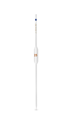Pipeta volumétrica clase A en vidrio de borosilicato, ideal para medir volúmenes precisos de líquidos, El volumen viene marcado con números grandes en el bulbo, código de color, aforo de grabado permanente, autoclavable. Calibrada para entregar TD de acuerdo a las especificaciones para ASTM E969