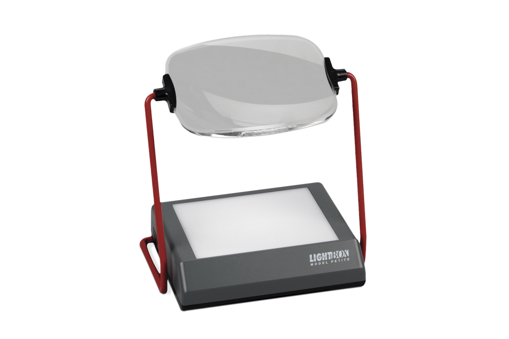 Mini Caja de luz LED para contar Colonias Mini contador de colonias consta de una mini lupa que junto a la caja de luz, agranda los objetos para facilitar la visualización de cajas Petri, placas de 96 pozos, geles de electroforesis, portaobjetos y transparencias. Es utilizada principalmente para la