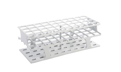 Gradilla para tubos de 10-18 mL OneRack ® (Blanca, 20 mm, 40 Lugares) De medio tamaño en polioximetileno POM reforzado con fibra de vidrio DELRIN, moldeado en una sola pieza por lo que no requiere ensamble. Ofrece mayor resistencia química y térmica (-40 a 140 °C) con ácidos, bases, solventes y