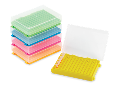 Gradilla para microtubos de PCR con tapa (Azul) Fabricada en polipropileno, perfecta para muestreo pre o post PCR, se adapta a tiras y tubos individuales, con tapa abatible traslúcida, con identificación numérica y es autoclavable. Catálogo Lugares Tubos Diámetro de pozo Color Dimensiones Marca