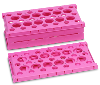 Gradilla para tubos comprimible Pop-Up (Rosa, 21, 12 Lugares) Fabricada en plástico de polipropileno, ideal para ocupar poco espacio de almacenamiento y con un sistema para abrirse o cerrarse de forma fácil. Diseñada para organizar tubos cónicos de 15 o 50 mL, se pueden apilar estando cerradas o